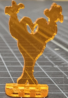 I cut the wizards out of different color acrylic. The basic design was a wizard, the base, and a holder. The holder is for a place to keep the treasure with the wizard. I found someone’s design on the net